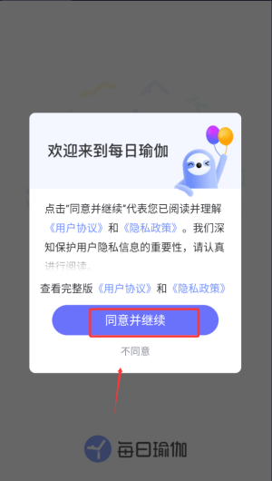 1、首次启动每日瑜伽极速版需完整阅读用户协议,点击同意选项后即可进入应用功能主操作界面。