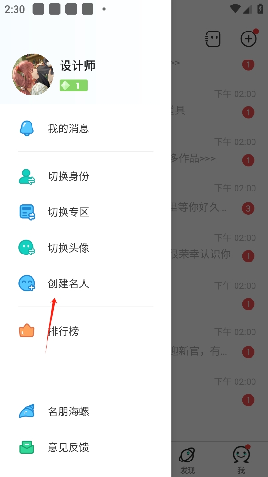 1、打开进入安装好的名人朋友圈旧版本,左滑菜单点创建名人。