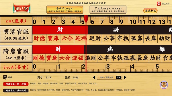 4、鲁班尺长度常用的尺寸42.9厘米、46.1厘米和丁兰尺38.1厘米。可自由切换需要使用的尺子,总有一种是你需要的。