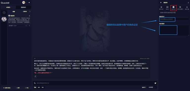 在我的角色里,按照下图所示操作,能编辑修改故事中用户的角色设定
