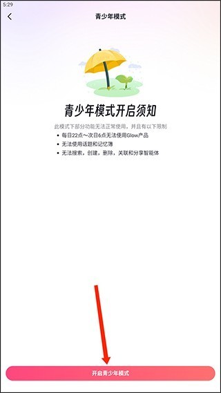 3、打开后,在最下方点击开启青少年模式即可完成设置。