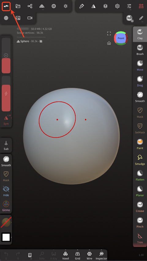 1、首先打开Nomad Sculpt,进入应用后,点击左上角按钮;