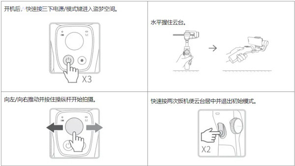 Tips::为保证云台快速对中并恢复跟随,云台的最终位置将在距真实中心±5°的范围内。摇杆可用于将云台微调至真实中心。