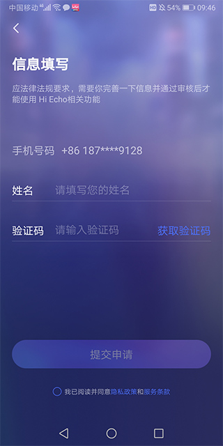 1、初次打开Hi Echo时,用户需要首先勾选同意相关隐私政策和服务条款