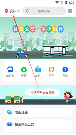 1、在本站下载安装好公交e出行之后,点击右上角选择您需要查询的城市。