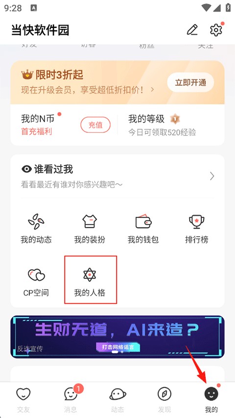 1、打开安装好的Nico社交软件,点击我的选项,然后点击我的人格。